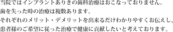 失った歯が1本の場合から、まったく歯がない場合など様々な状態への対応が可能です。